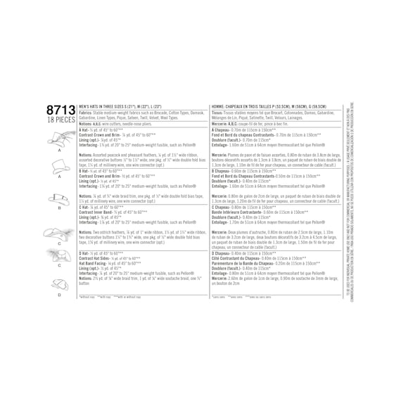 Simplicity Sewing Pattern 8713 Men S Hats In Three Sizes Etsy Israel